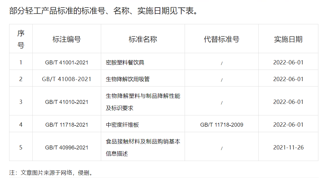GB/T 41001-2021《密胺塑料餐饮具》、GB/T 41008-2021《生物降解饮用吸管》等185项国家标准发布