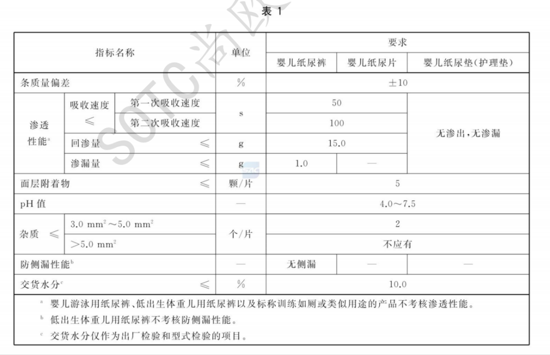 在GB/T 33280-2016中,对腰贴型婴儿纸尿裤和裤型婴儿纸尿裤有不同的要求。