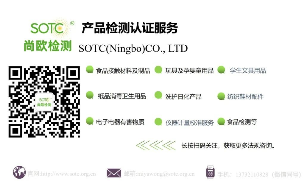 宁波尚欧检测技术服务有限公司(简称SOTC尚欧检测)专注于产品检测认证和产品质量体系控制,作为专业的第三方检测认证领域机构服务商,公司集合行业优质质检平台,积极与国内外知名第三方及政府检测单位间展开技术交流及战略合作。业务领域涵盖婴童产品,日化产品,电子电器,食品接触材料,光电安规,家具木材,文具玩具,化妆品,一次性卫生用品及各类包装材料(包括但不限于)等的检验、检测、认证及咨询服务。