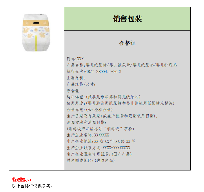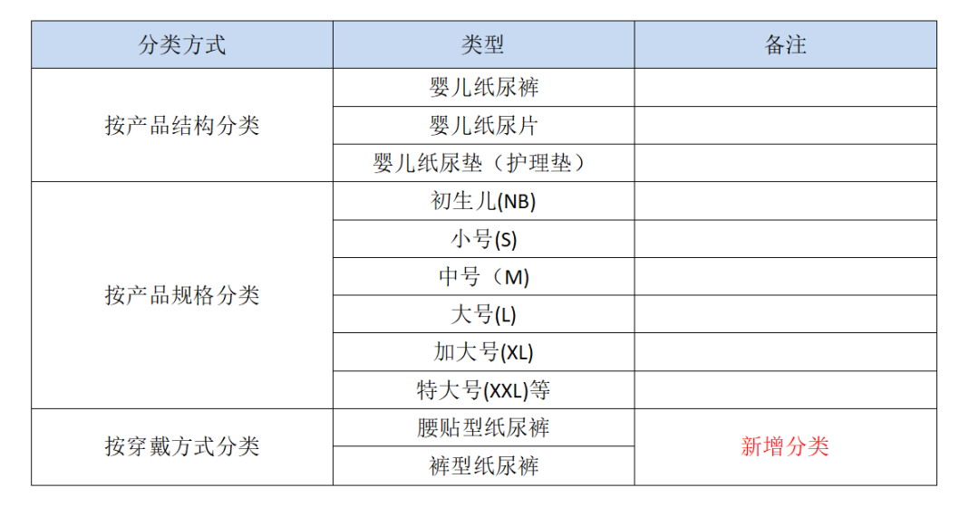 注:低出生体重儿用纸尿裤的产品规格可以自行规定。