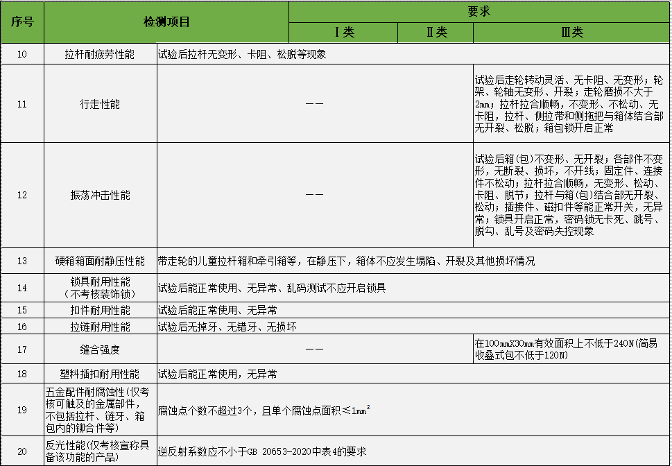 III类:6岁(含)以上至14岁以下儿童使用的箱包。