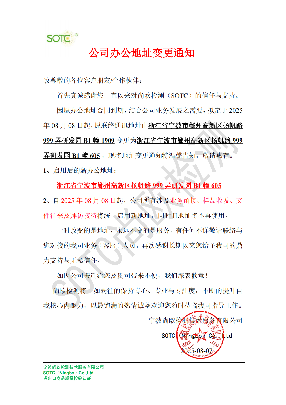 SOTC 办公地址变更通知